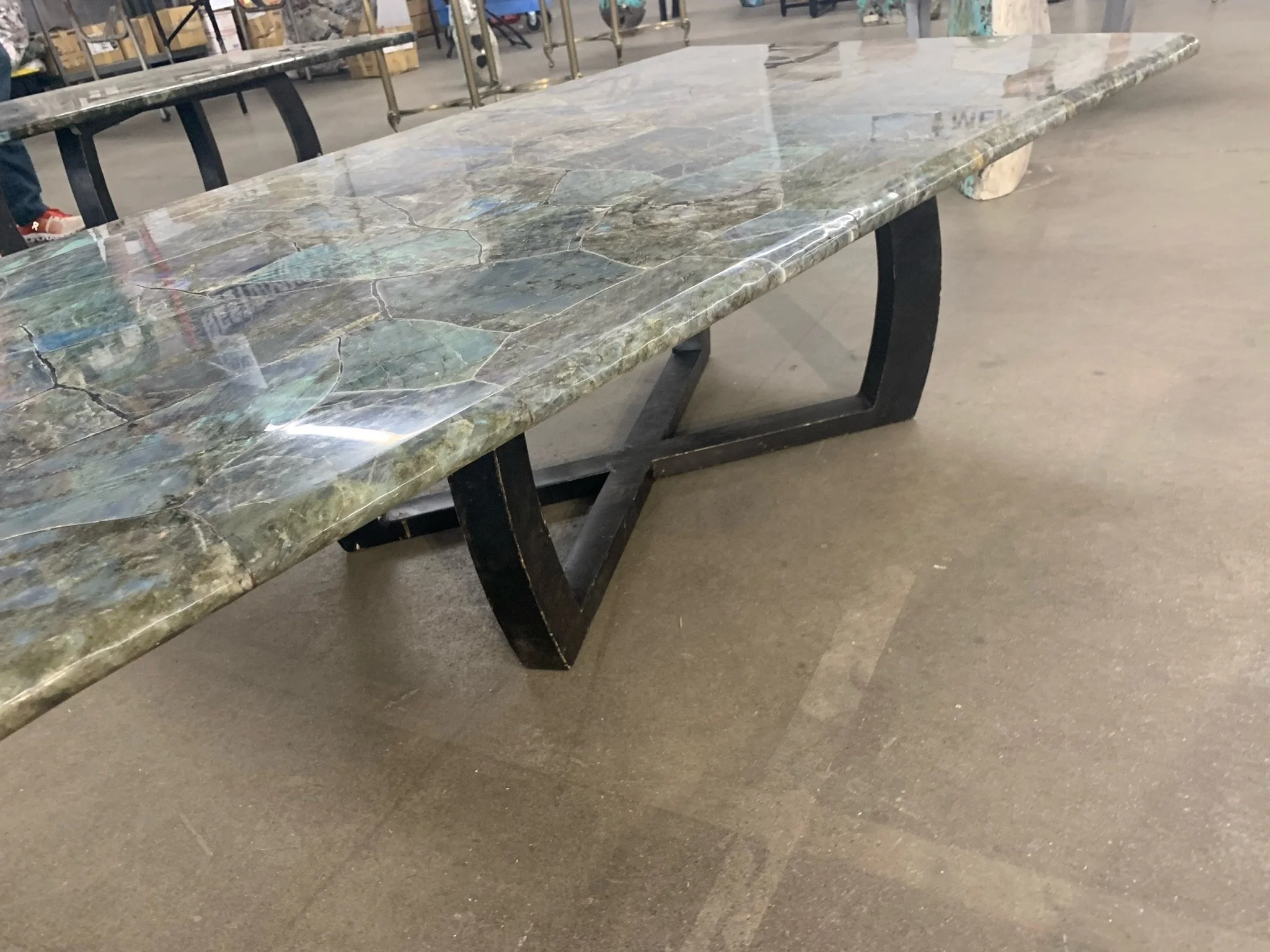 Gemstone tables can be put together with smaller pieces held in place with resin or similar material or they can be cut from one solid piece.